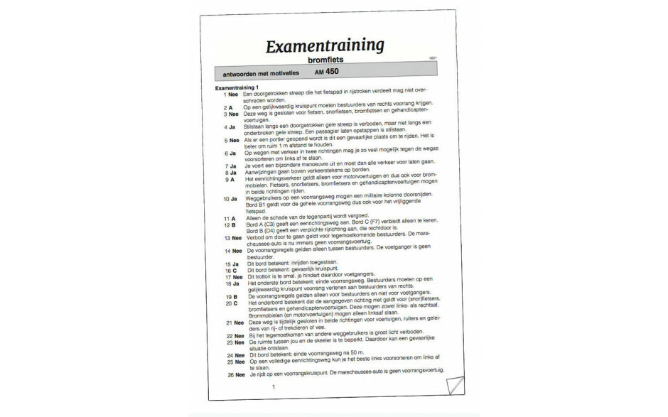 Dit Examentrainingsboek bevat 450 vragen voor de bromfiets verdeeld over 8 examentrainingen en 1 bordentraining.