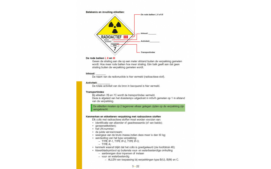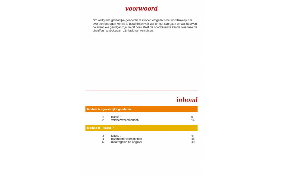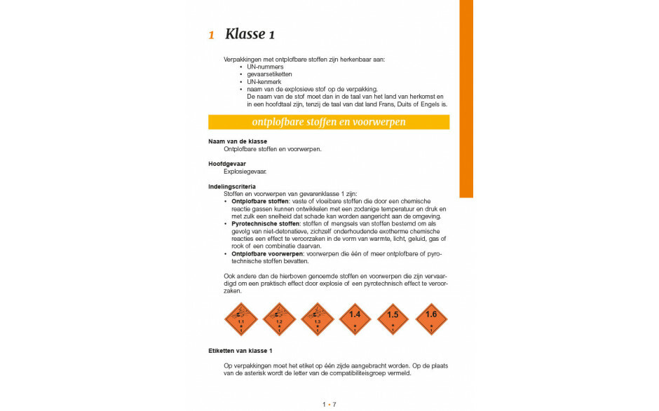 Op heldere en vooral visuele wijze wordt de chauffeur wegwijs gemaakt in de voor de hem noodzakelijke kennis van alle aspecten van het vervoer van onplofbare stoffen en voorwerpen (klasse 1), ook wel explosieven én van radioactieve stoffen (klasse 7).